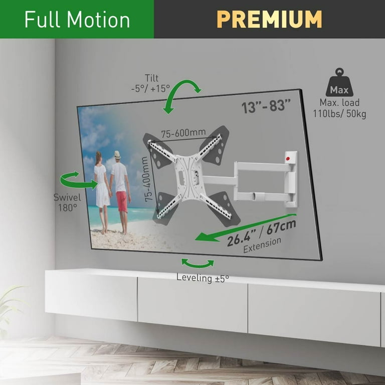 Barkan Long White Tv Wall Mount 13 80 Inch Full Motion Patented Flat Curved Screen Bracket Holds Up To 110lbs Extremely Extendable Fits Led Oled Lcd Walmart Com